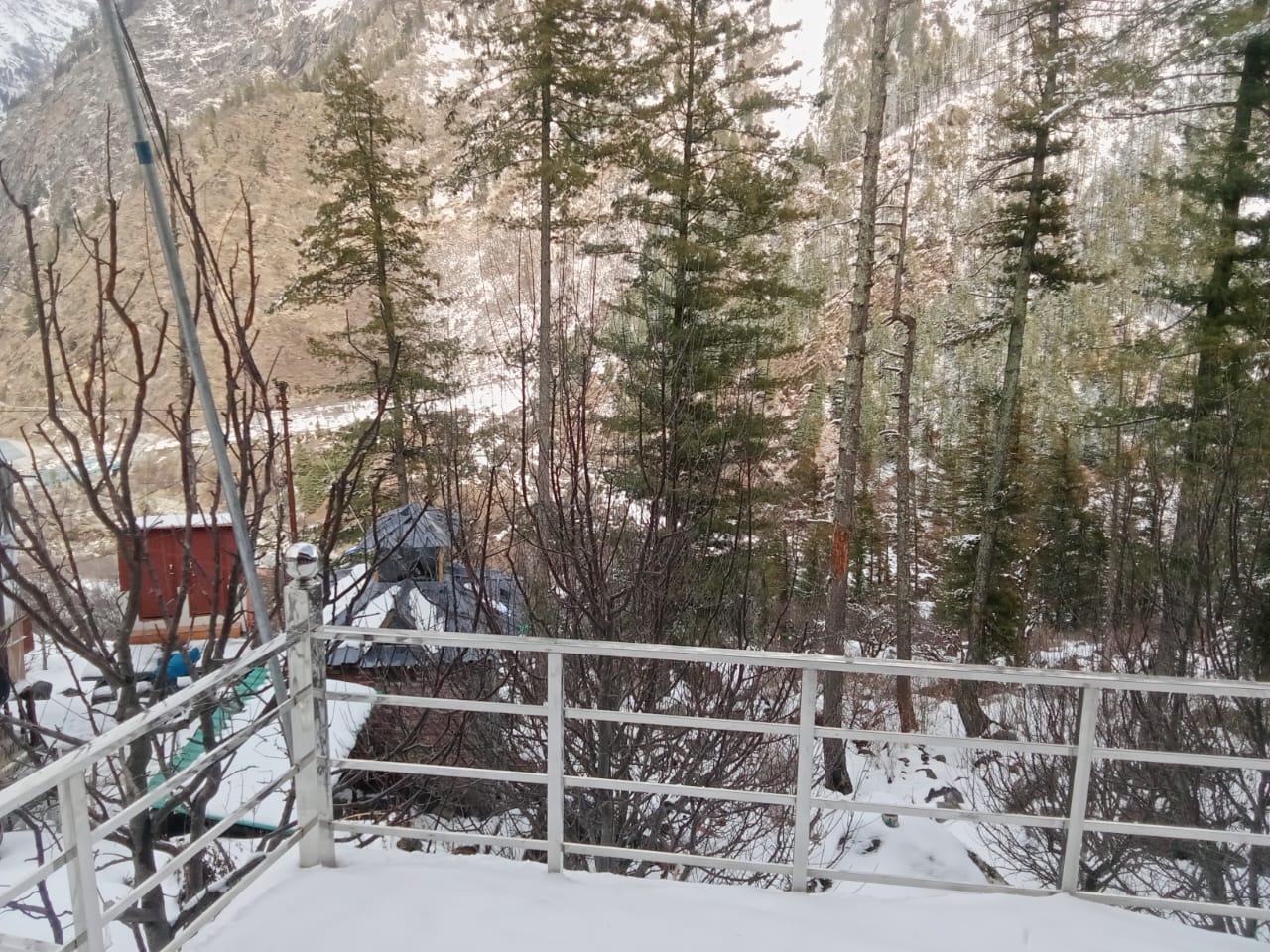 The next morning, after enjoying a hearty breakfast, we set off for the Harshil Valley. The journey took about three and a half hours, but the breathtaking views along the way made the time fly by. As we arrived, we were greeted by a mesmerizing sight—snowfall blanketed the entire valley, transforming it into a serene wonderland. It felt as though a pristine white sheet of snow had been draped over the landscape, creating a magical and tranquil atmosphere.